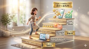 最初から月10万円を狙うより、まずは月5,000円、1万円、3万円と積み上げるほうが成功しやすいです。