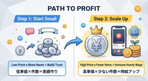 現実的には、まず小さく始めて、評価や実績を積み上げながら伸ばしていく副業です。